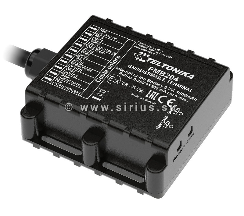 Трекер Teltonika FMB204 — водонепроницаемое устройство (класс защиты IP67), предназначено контроля за транспортом, определения его местонахождения по координатам, а также состояния автомобиля в данный момент. Устройство имеет возможность работать автономно без внешнего источника питания до 6 дней в режиме энергосбережения благодаря внутреннему Li-ion аккумулятору.