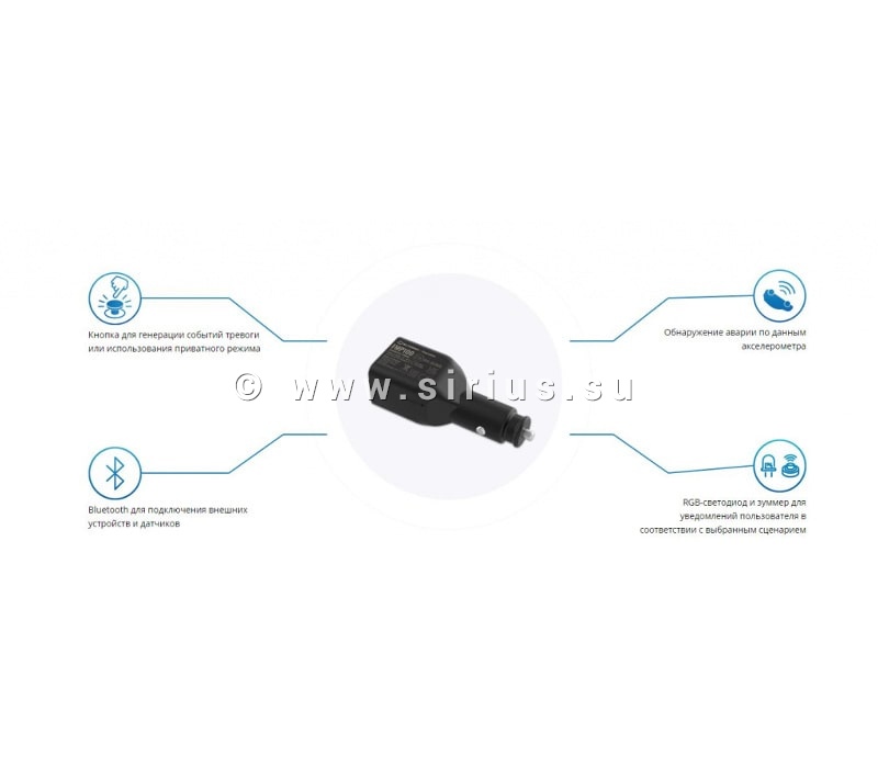 Простое устройство, оснащенное встроенными чувствительными антеннами ГЛОНАСС/GPS и GSM. Не оснащен встроенной батареей, но обладает максимально низкой ценой и всем необходимым функционалом.